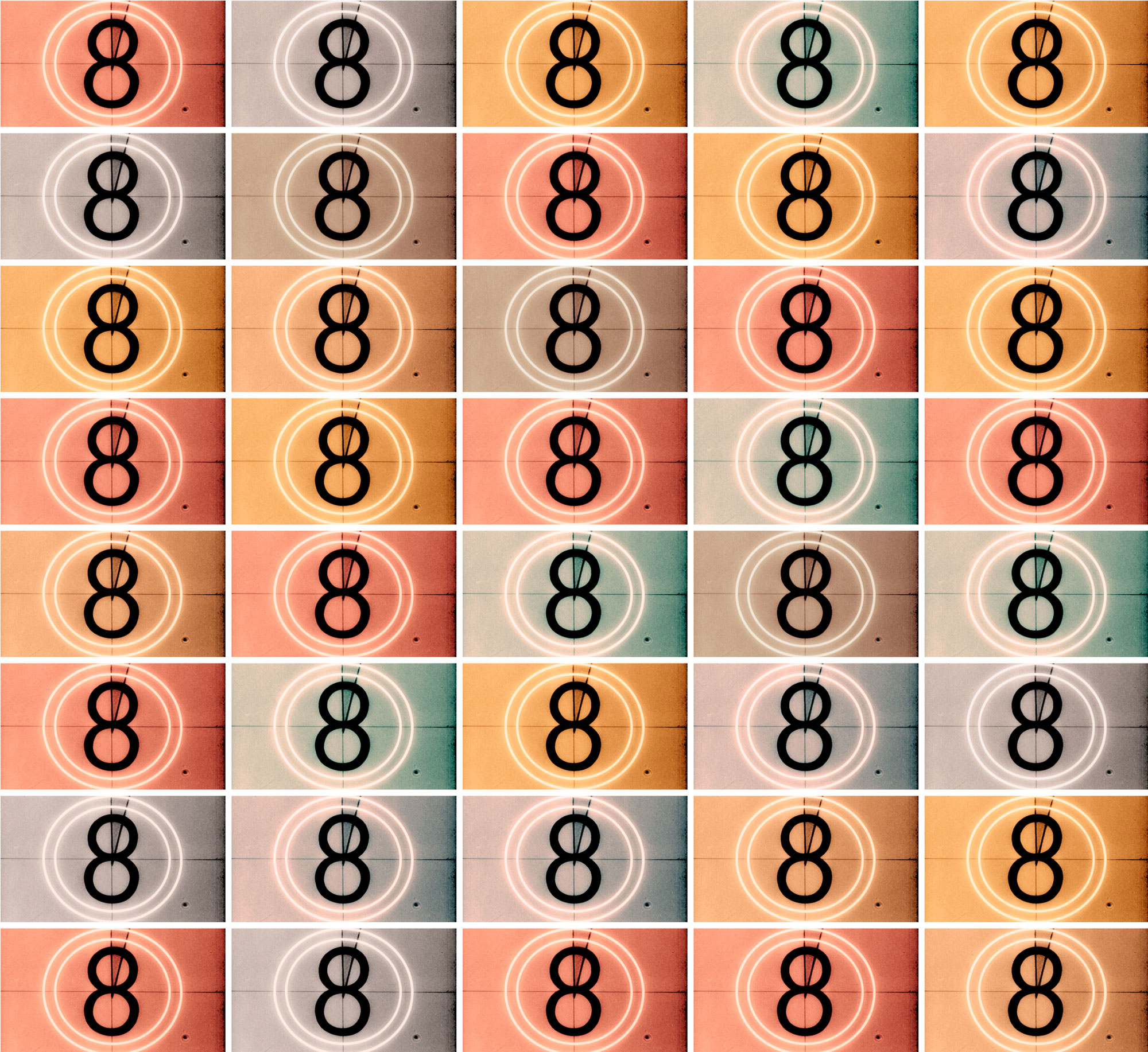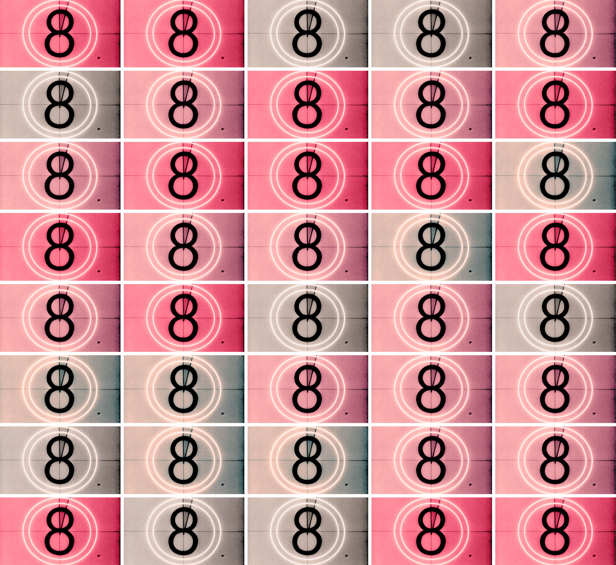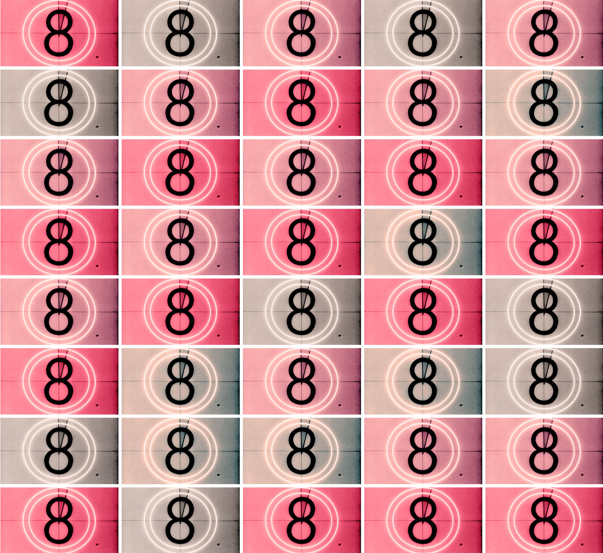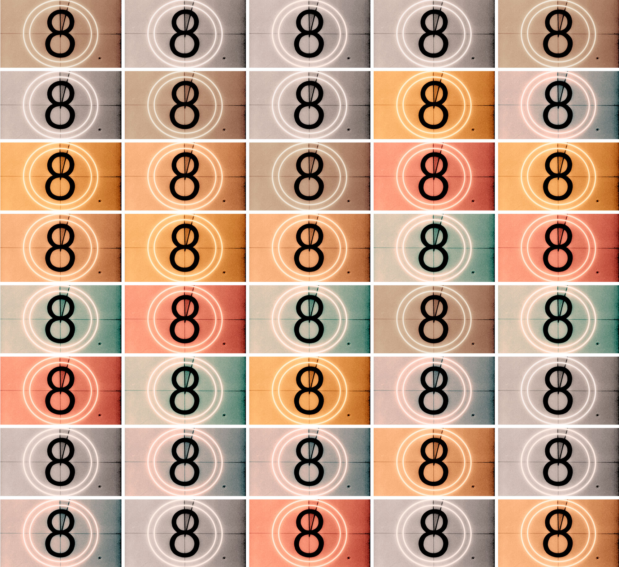 This series includes multiple mediums: digital paintings, a website artwork, and an installation, all made up entirely of film countdowns. These are the numbers that were counted down from 8-to-2 at the beginning of every movie reel.